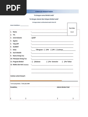 Contoh Formulir Pendaftaran Bimbel Doc Materi Pelajaran 7