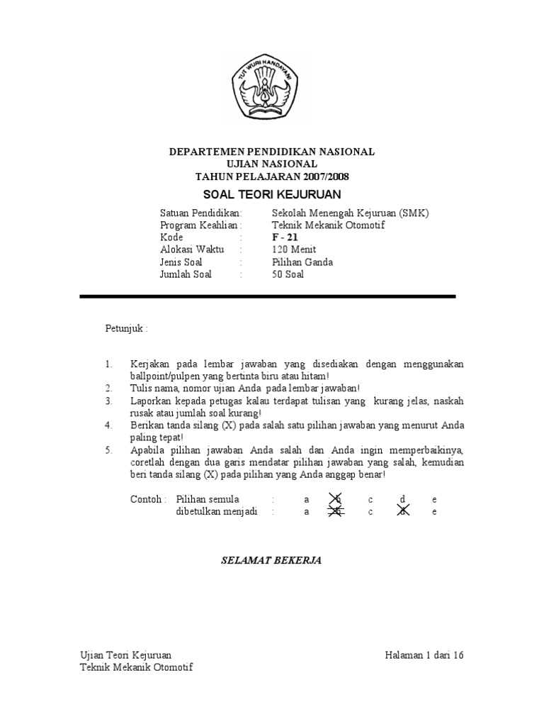 Soal Otomotif Dan Kunci Jawaban Guru Galeri