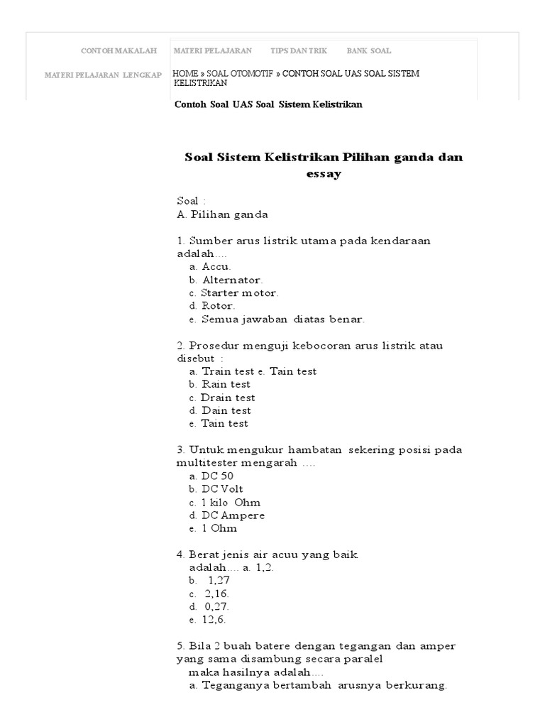 Contoh Soal Uas Soal Sistem Kelistrikan Otomotif Zone