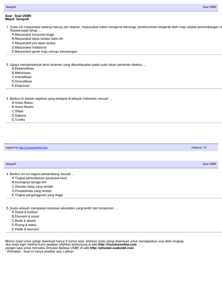 Soal Usbn Geografi 2019 Pdf Doc