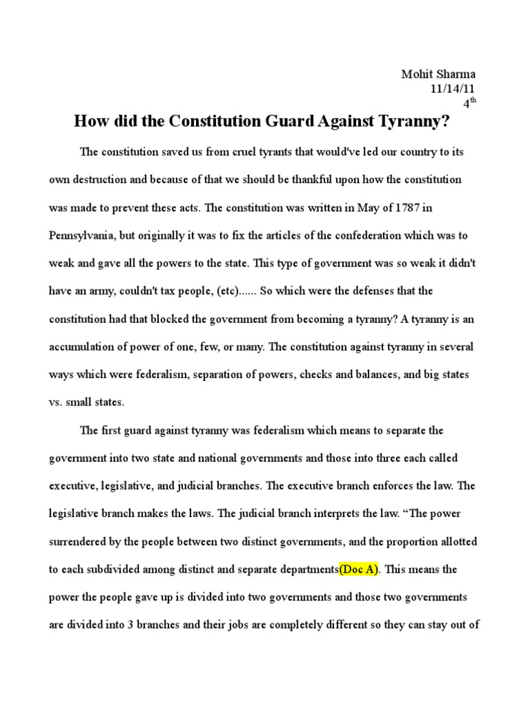 How Did The Constitution Guard Against Tyranny Dbq Essay