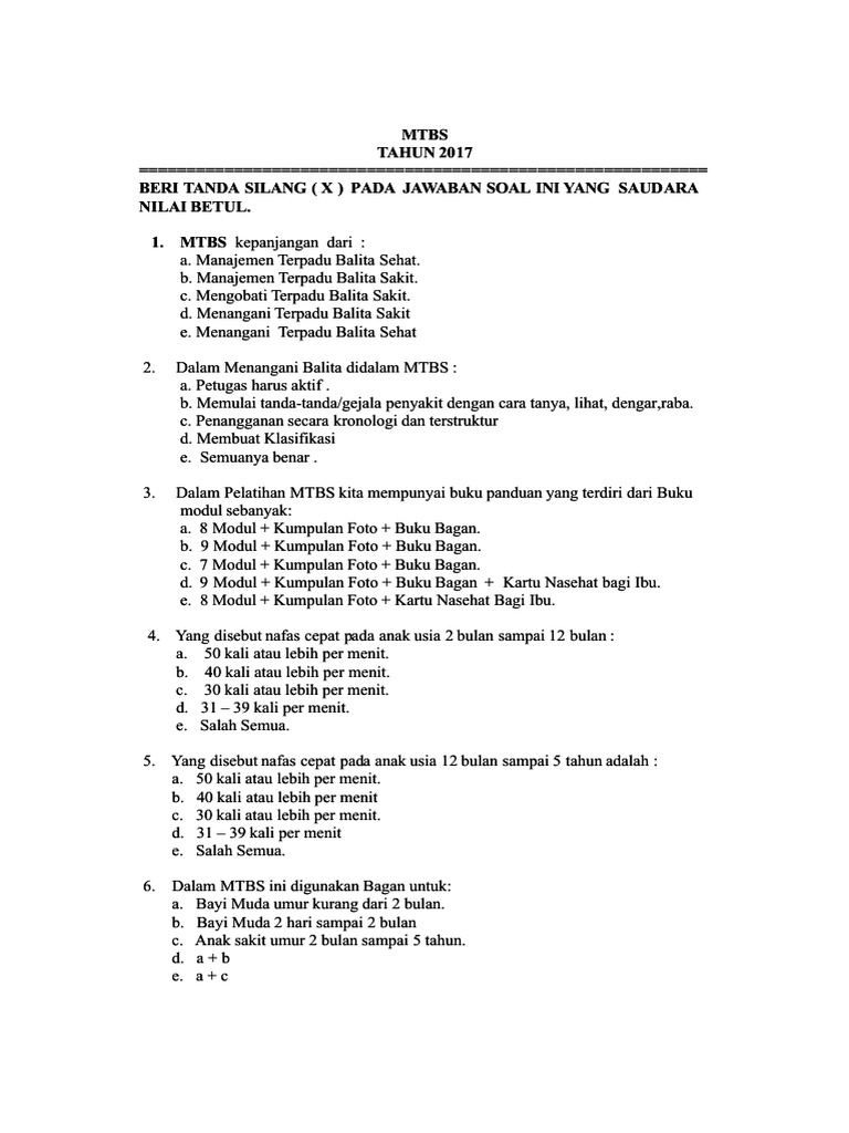 Edoc Site Soal Pre Test Dan Post Test Mtbs Pdf