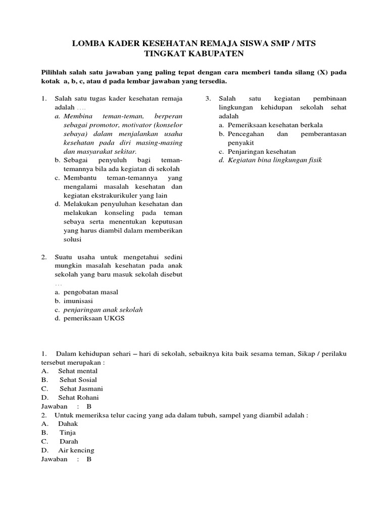 Kader Kesehatan Remaja Naskah Soal Lomba Desember 2017