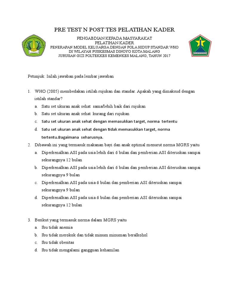 Soal Pretest Pelatihan Keluarga Sehat 2017