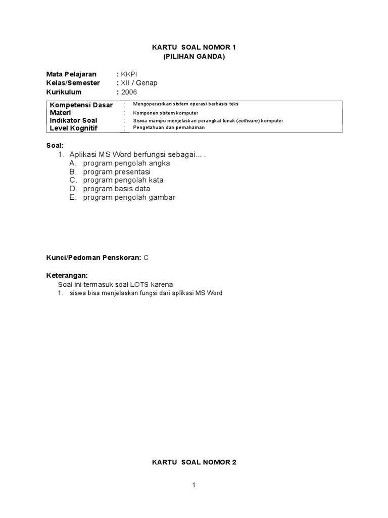 Kali ini saya akan membagikan bahan belajar untuk Latihan Soal di rumah atau bahan untuk pembuatan soal bagi guru bidangstudi dengan pelajaran yang sama. Soal KKPI kelas xii Soal dan jawaban KKPI kelas xii semester 2 Soal uas KKPI kelas xii beserta jawabannya Contoh soal kelas xii KKPI smasmk semester Genap Temukan solusinya disini Ada sekitar 50 soal KKPI kelas XII UAS yang terbagi menjadi 3 part. Pilihlah salah satu jawaban yang benar dengan memberi tanda silang X pada.