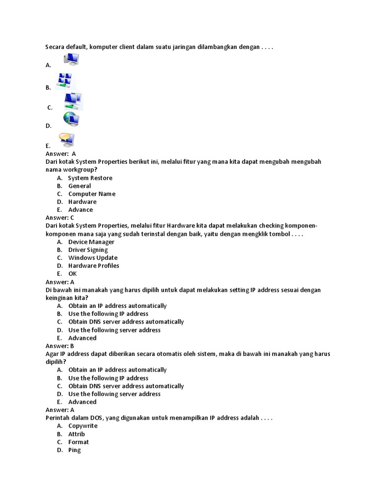 Perhatikan dan ikuti petunjuk pengisian pada lembar jawaban yang disediakan. Berbagi user brainware 2. Domain uk merupakan domain negara.